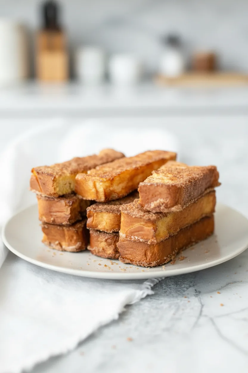 Knusprige French-Toast-Sticks mit Zimt-Zucker aus dem Airfryer – perfekt für schnelle Frühstücke oder süße Snacks.
