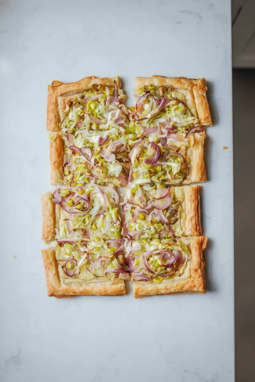 Blätterteig-Tarte mit Lauch und Zwiebeln