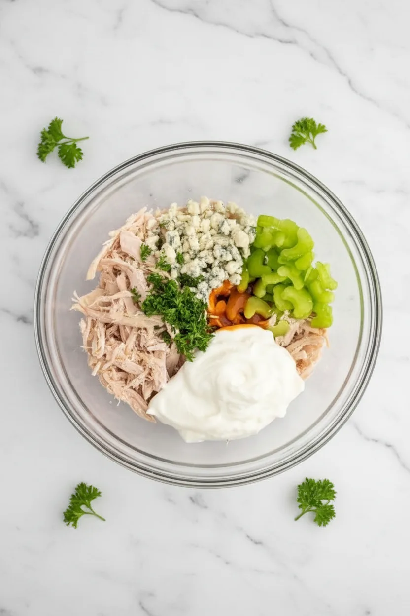 Dieser Buffalo-Hähnchensalat bietet dir eine perfekte Mischung aus cremiger Konsistenz und würzigem Geschmack. Dank der einfachen Zubereitung und der flexiblen Serviermöglichkeiten wird er schnell zu deinem neuen Lieblingsgericht.