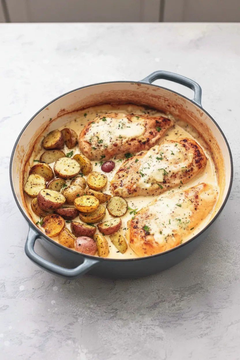 Cremiges Dijon-Hähnchen mit Kartoffeln