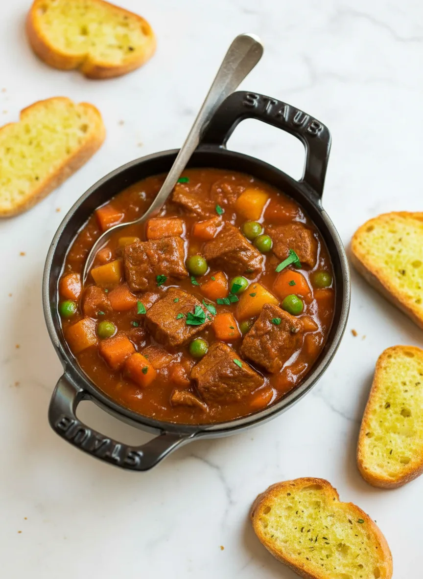 Ein herzhaftes Slow-Cooker-Rezept mit zartem Rindfleisch und frischem Gemüse in einer würzigen Tomatenbrühe. Perfekt für stressfreie Mahlzeiten.