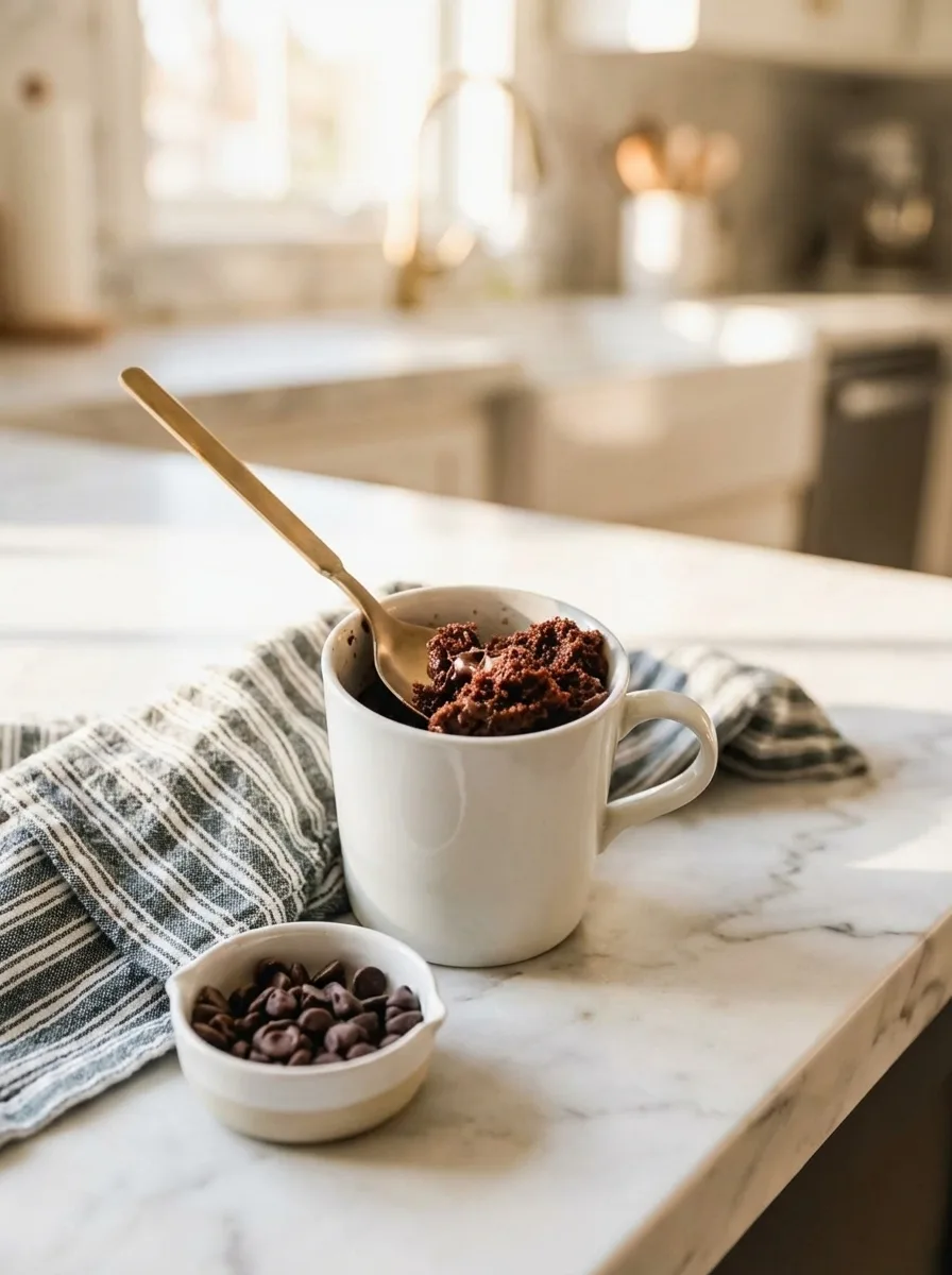 Ein unglaublich schneller Schokokuchen für eine Person, direkt in der Mikrowelle zubereitet. Perfekt für spontane Süßgelüste!