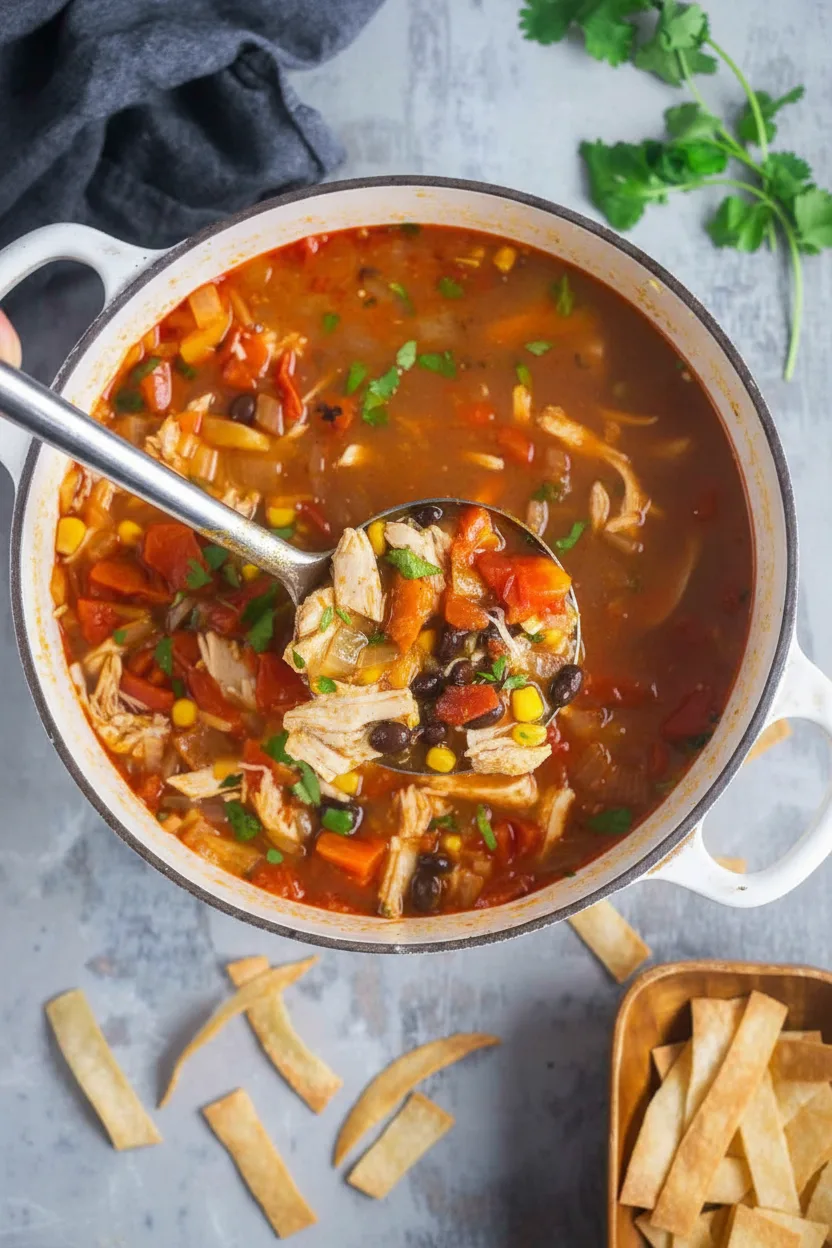 Würzige mexikanische Suppe mit Hähnchen, Bohnen und knackigen Toppings – schnell zubereitet und voller Geschmack!