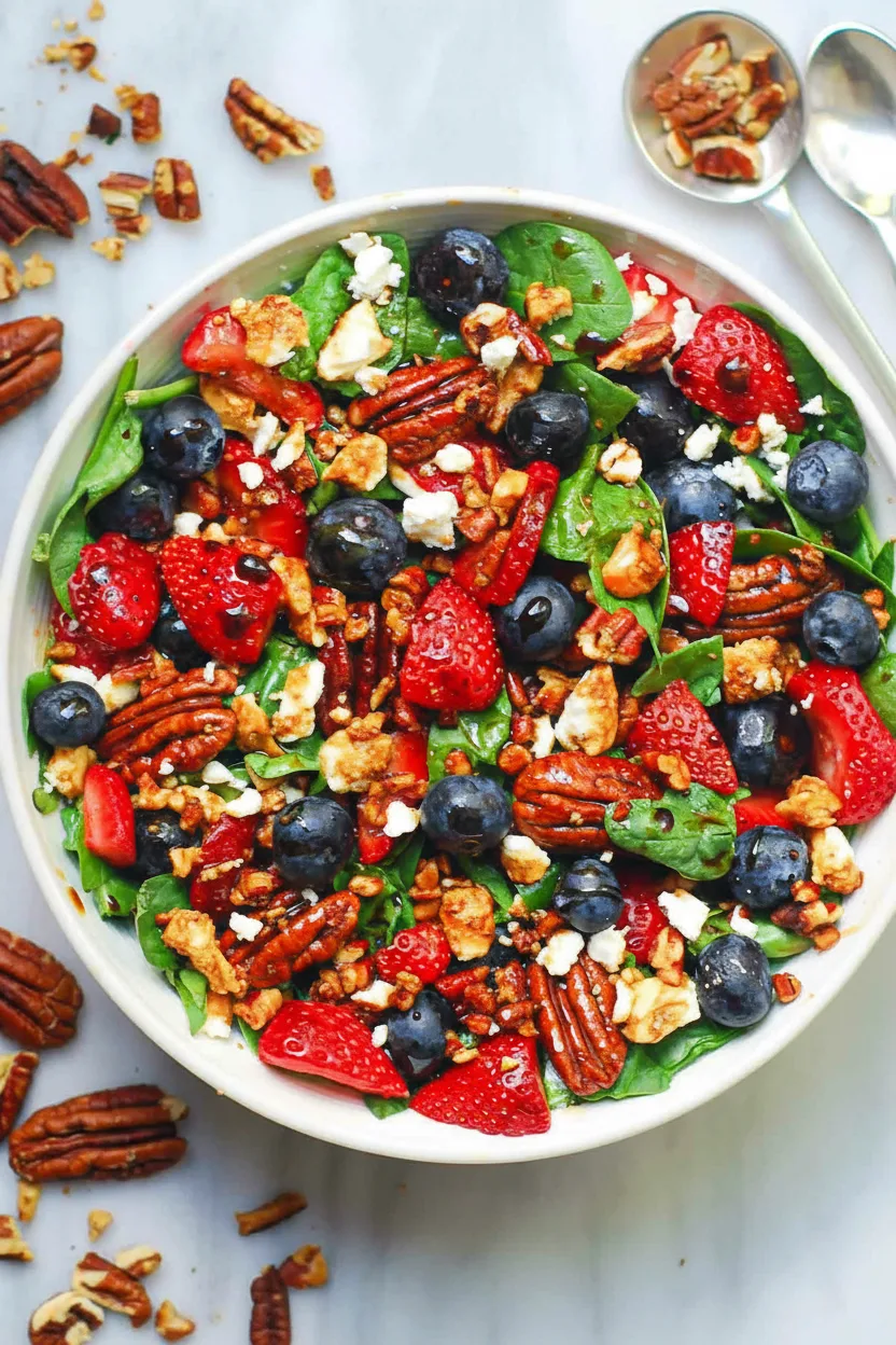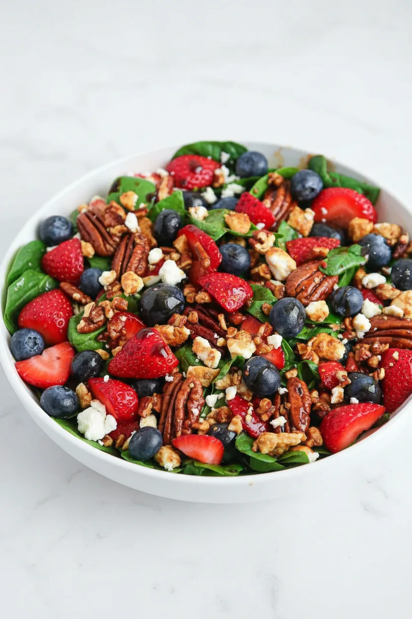 Kombiniert saftige Beeren mit knackigem Spinat, cremigem Feta und gerösteten Pecannüssen für einen unwiderstehlichen Kontrast aus süßen und herzhaften Aromen.