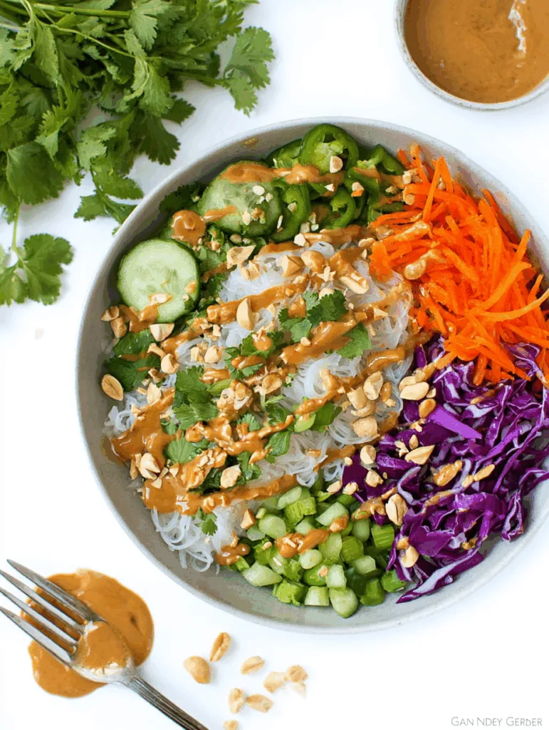 Eine frische, asiatisch inspirierte Bowl mit Reisnudeln, knackigem Gemüse und einer cremigen Erdnusssoße – perfekt für ein schnelles Mittagessen oder leichtes Abendessen.