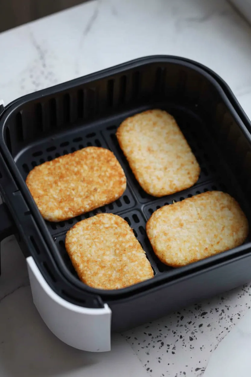 Knusprige gefrorene Hash Brown Pattys aus dem Airfryer – schnell, einfach und fettarm zubereitet für ein perfektes Frühstück oder als Beilage.