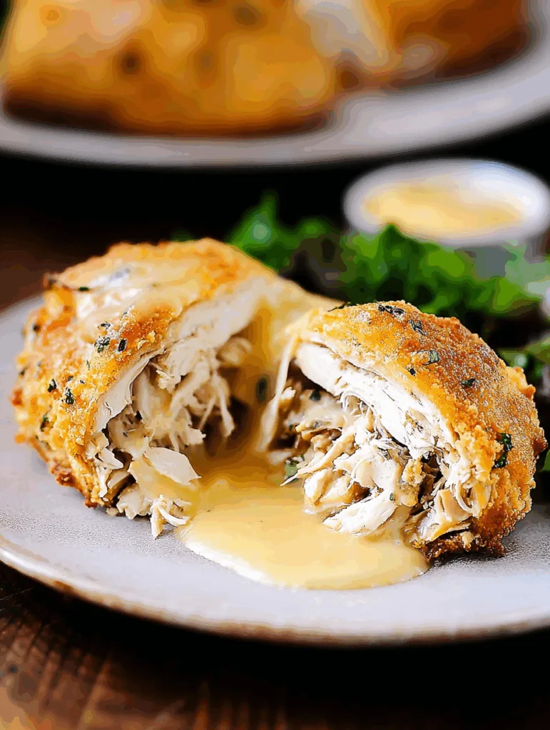 Diese knusprig gefüllten Hähnchen-Taschen schmecken pur schon fantastisch – aber mit einer passenden Beilage oder Soße wird das Ganze noch besser. Besonders beliebt ist eine einfache cremige Sauce auf Basis von Hähnchenbrühe und Frischkäse. Für ein leichtes Gericht kannst du die Taschen mit frischem Blattsalat servieren – ein Spritzer Zitronensaft bringt zusätzliche Frische auf den Teller.