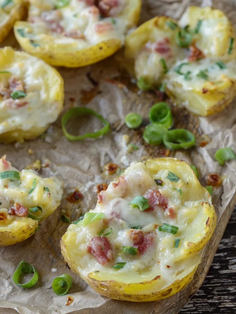 Knusprige Kartoffelhälften gefüllt mit rauchiger Putencreme und überbackenem Käse – schnell zubereitet und voller Aromen.