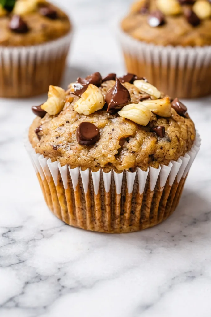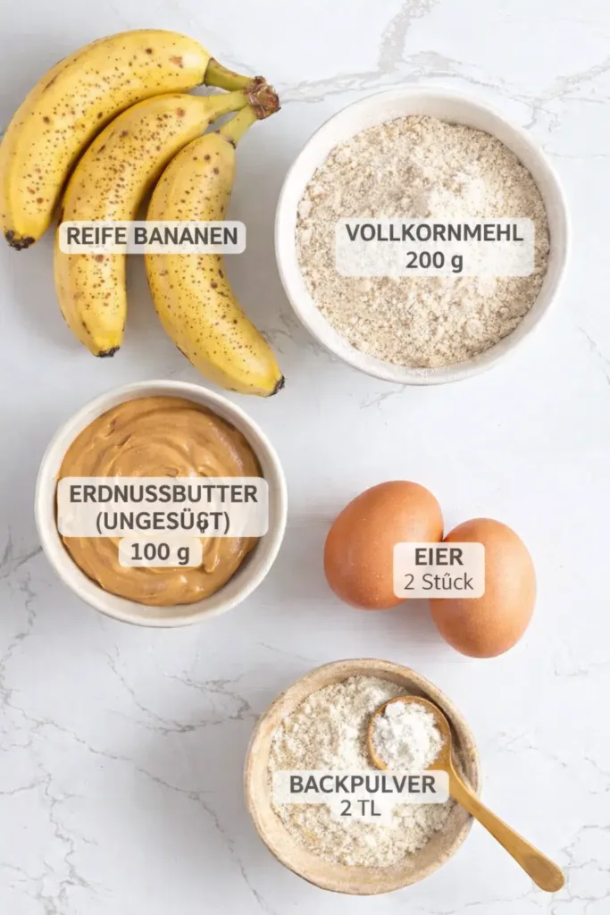 Gesunde Muffins mit natürlicher Süße aus Bananen und nussigem Erdnussbuttergeschmack – perfekt für Frühstück oder Snack