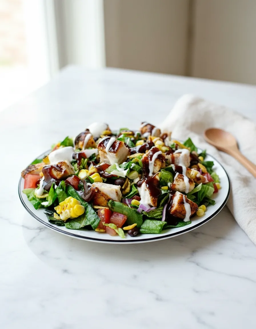Dieser knackige BBQ-Hähnchen-Gehacktsalat kombiniert saftiges Grillhähnchen mit frischem Gemüse und einer würzigen Sauce. Perfekt für schnelle Abendessen oder Meal Prep.