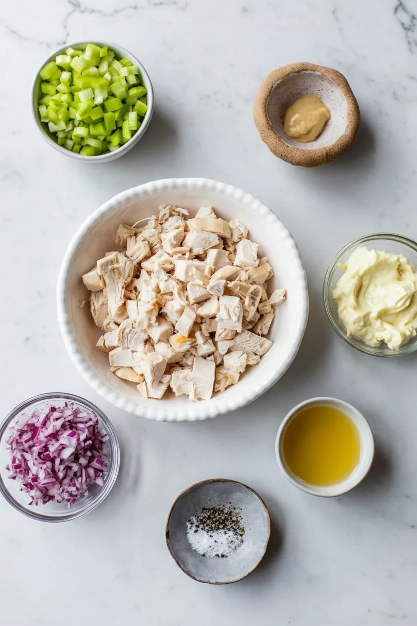 Die Zutatenliste für diesen Hähnchensalat ist bewusst einfach gehalten. Dadurch kannst du das Rezept leicht an deine Vorlieben anpassen oder spontan zubereiten, ohne extra einkaufen zu müssen.