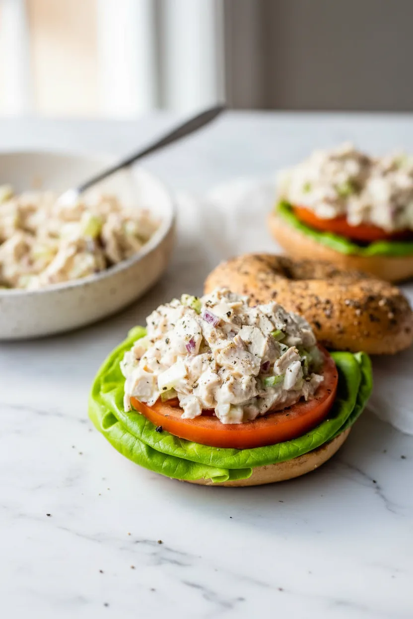 Ein cremiger Hähnchensalat mit knackigem Gemüse – perfekt für unterwegs oder als schnelles Mittagessen.