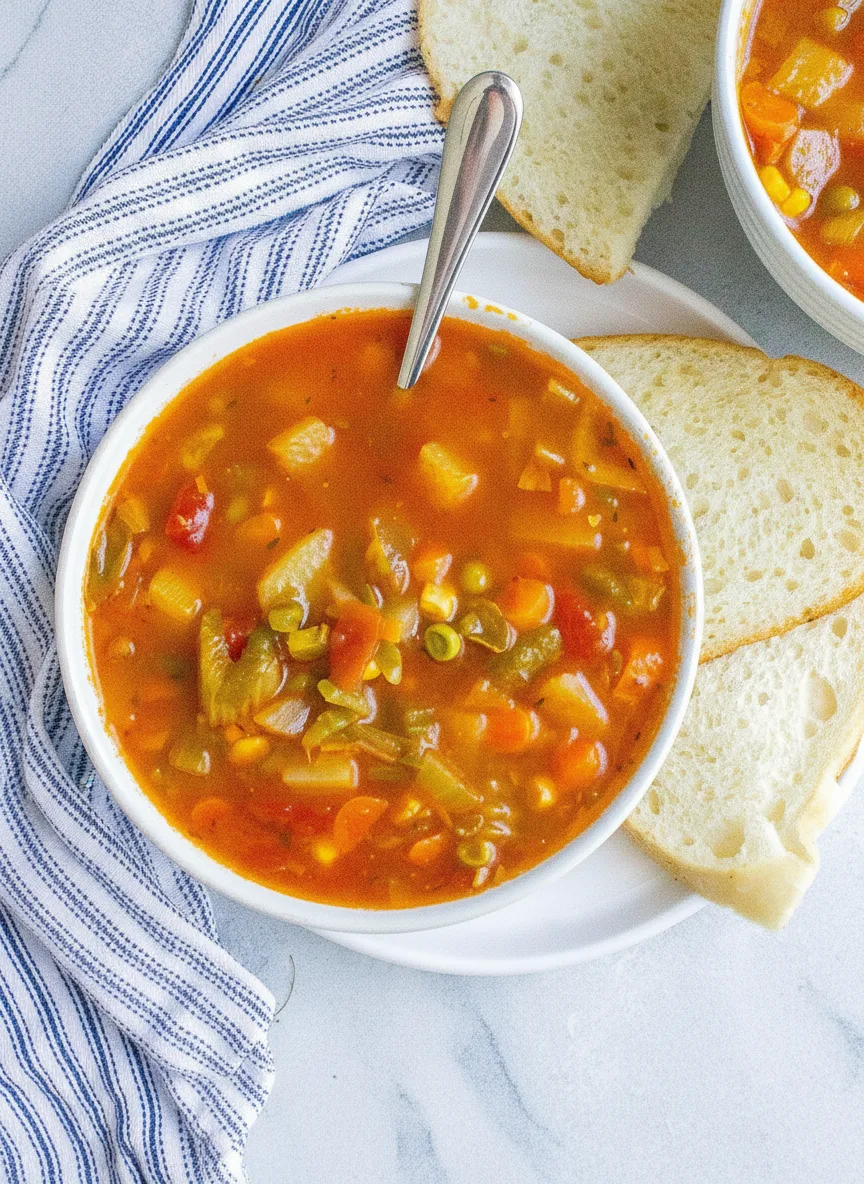 Ein köstliches einfaches Rezept für eine nahrhafte Gemüsesuppe mit frischen und konservierten Zutaten – perfekt für eine schnelle Hauptmahlzeit