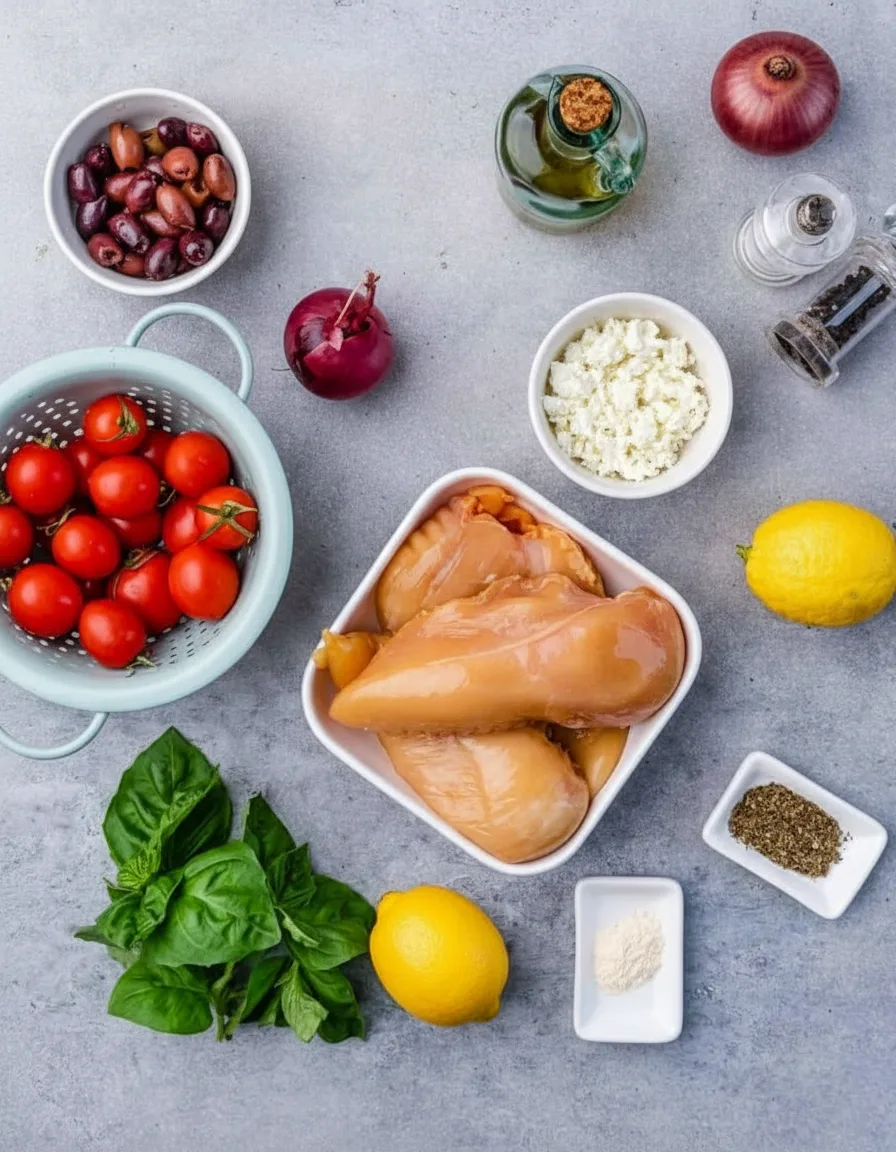 Mediterranes Hähnchengericht mit Zitronenmarinade und Feta-Käse, einfach im Ofen gebacken.