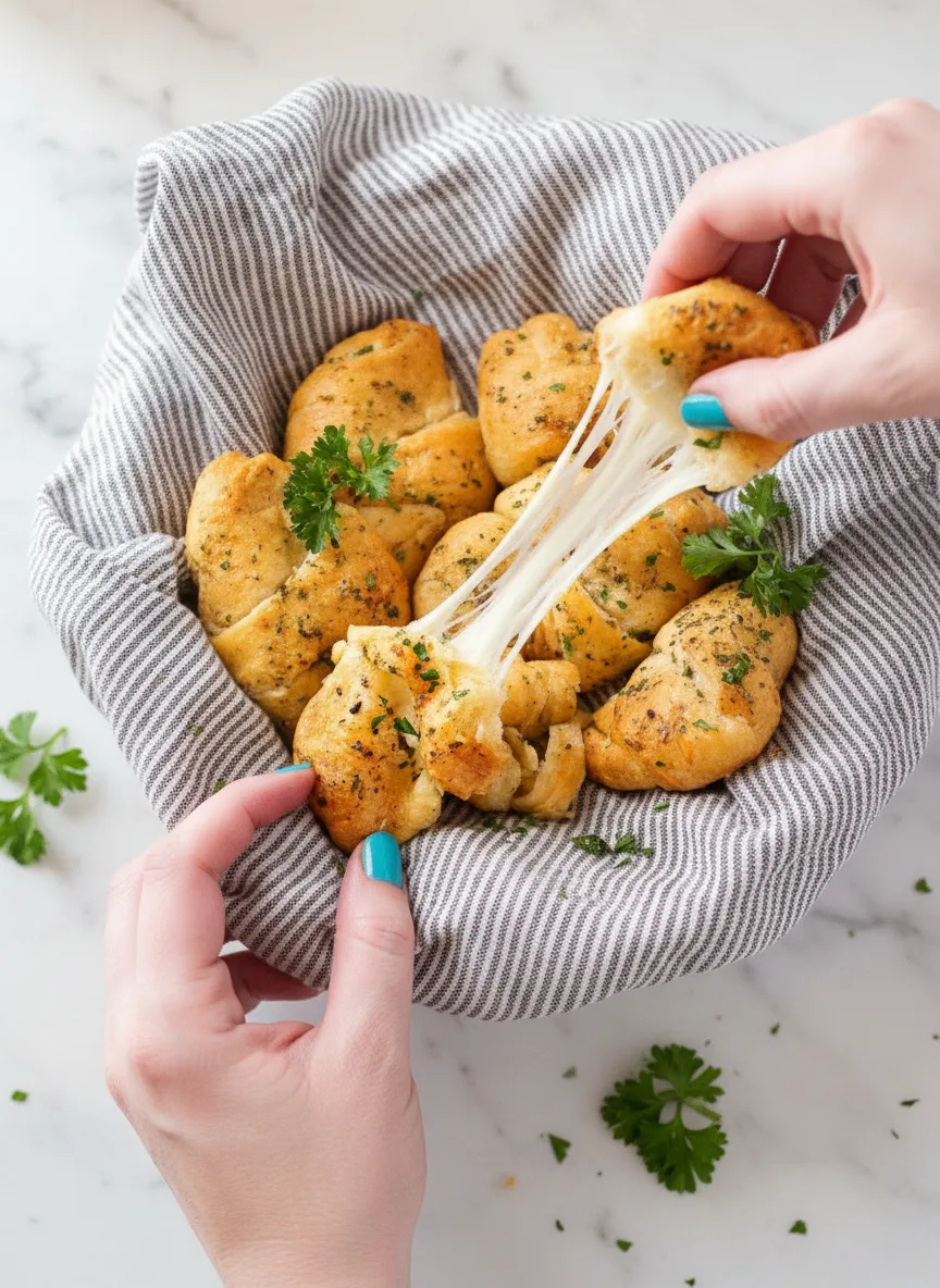Der zarte Blätterteig umhüllt geschmolzenen Käse, während die Kräuter-Knoblauch-Butter für ein unwiderstehliches Aroma sorgt. Perfekt für spontanen Besuch oder als leckerer Fernsehsnack!