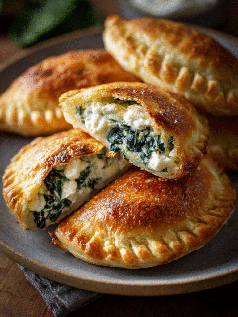 Diese knusprigen Kartoffeltaschen mit cremiger Spinat-Frischkäse-Füllung sind einfach gemacht, sättigend und ideal für die ganze Familie.