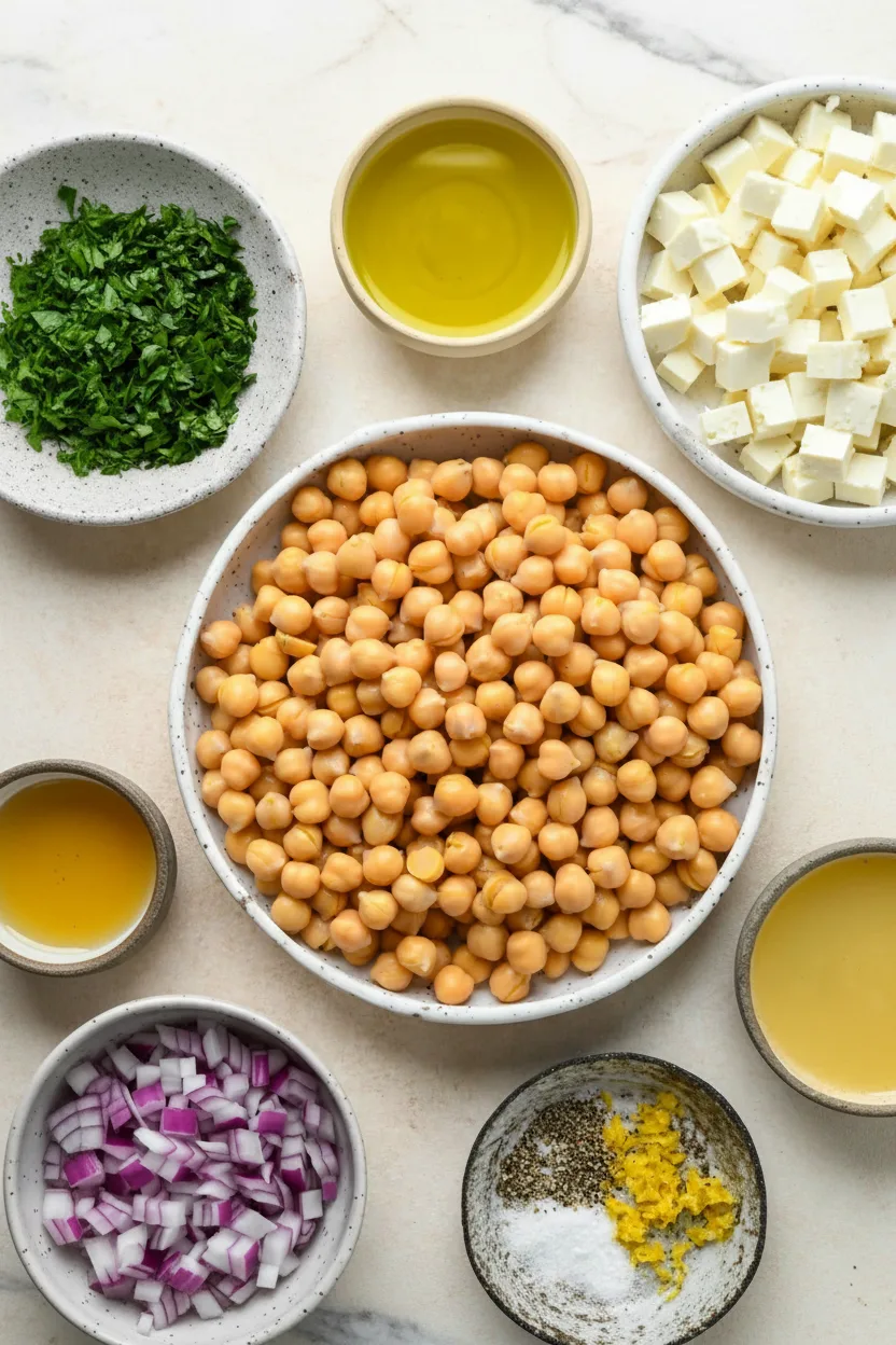 Ein schneller, cremiger und proteinreicher Salat mit Kichererbsen, Feta und Avocado in einem frischen Zitronendressing. Perfekt als Hauptgericht oder Beilage.