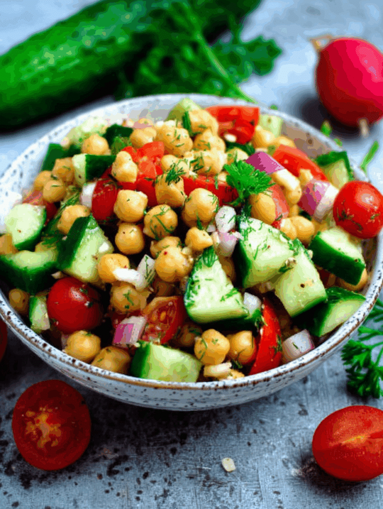 Manchmal muss es richtig schnell gehen – aber trotzdem frisch, gesund und lecker sein. Genau dafür ist dieser Kichererbsensalat gemacht. Er bringt Farbe, Geschmack und Nährstoffe auf den Teller – und das in nur 15 Minuten. Ob als leichtes Mittagessen, Grillbeilage oder Meal-Prep für unterwegs: Dieser einfache Kichererbsensalat begeistert jedes Familienmitglied.