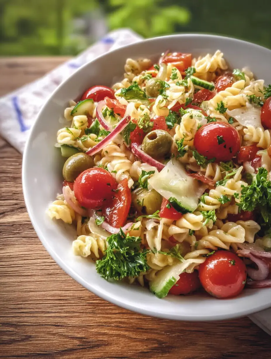 Ein erfrischender, bunter Pasta-Salat voller knackigem Sommergemüse und einer würzigen Vinaigrette. Perfekt als leichtes Hauptgericht oder Beilage.