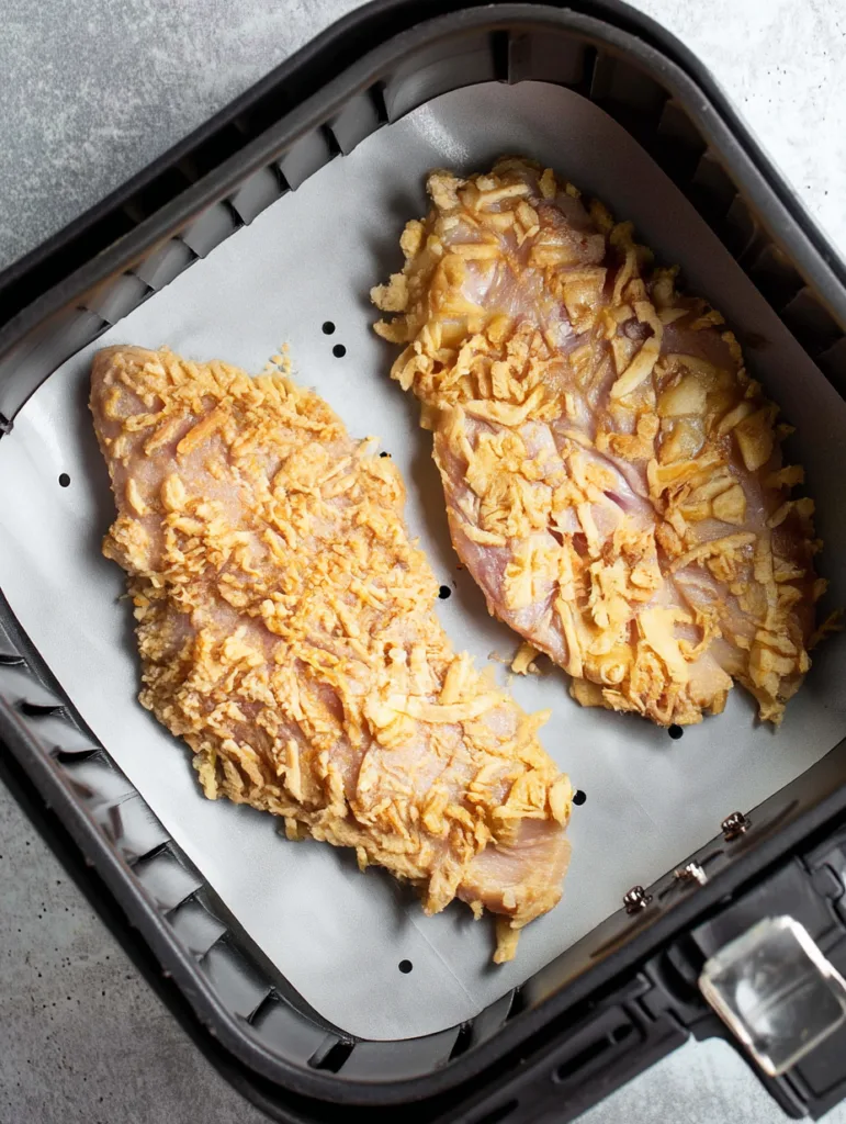 Knuspriges Zwiebelhähnchen aus der Heißluftfritteuse – schnell, einfach und super lecker! Perfekt für ein schnelles Abendessen mit nur 24 Minuten Gesamtzeit.