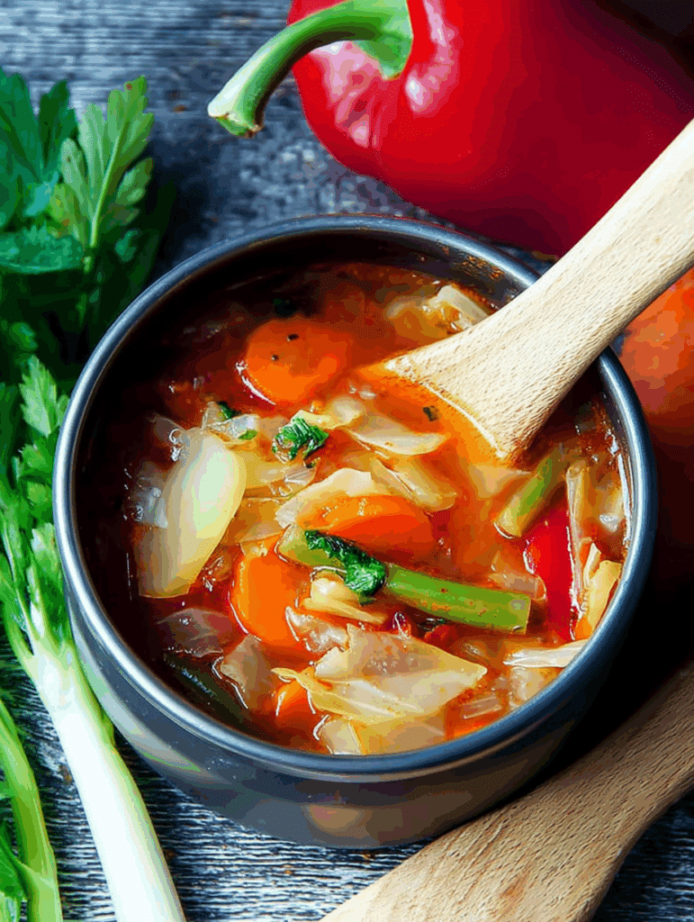 Die Basis dieser Suppe sind frisches Gemüse und aromatische Gewürze. Weißkohl liefert wertvolle Ballaststoffe und ist kalorienarm, während Karotten und Paprika für Farbe und Vitamine sorgen. Sellerie bringt eine herzhafte Note ins Spiel, und Zwiebeln geben den klassischen Suppengeschmack. Bohnen runden die Mischung ab und machen die Suppe leicht sättigend, ohne schwer im Magen zu liegen. Mit einfachen Zutaten entsteht so ein Gericht, das nährstoffreich, bekömmlich und auch für die ganze Familie bestens geeignet ist.
