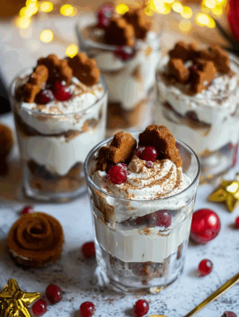 Beginne beim Servieren mit einem klaren Glas. So sieht man jede Schicht – das helle Cremeweiß, das warme Braun der Lebkuchen und das leuchtende Rot der Kirschen. Wenn du möchtest, kannst du die Gläser vor dem Befüllen leicht kühlen. Das gibt der Creme einen frischen Kick und macht sie beim Servieren besonders angenehm.