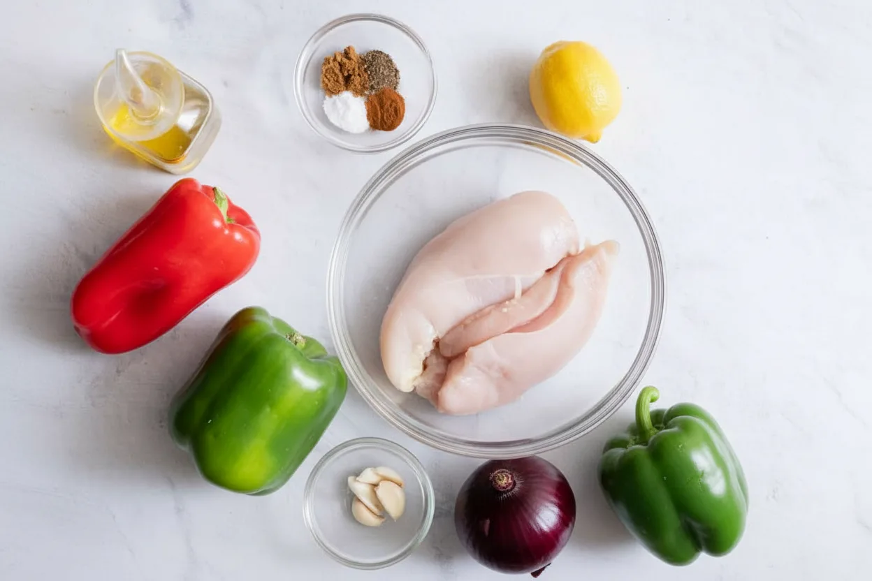 Für dieses Rezept sind die Hauptzutaten überschaubar. Du benötigst etwa 680 Gramm Hähnchenbrustfilet ohne Haut und Knochen. Schneide es in gleichmäßige, mundgerechte Würfel, damit alles gleichmäßig durchgart. Für das Gemüse brauchst du eine große rote Zwiebel und zwei bunte Paprikaschoten. Wähle verschiedene Farben wie rot, gelb oder grün, um dem Teller mehr visuelle Attraktivität zu verleihen.