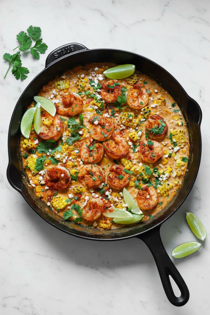 Cremiges mexikanisches Straßenmaisgericht mit saftigen Garnelen – perfekt für schnelle Abendessen mit besonderem Geschmack