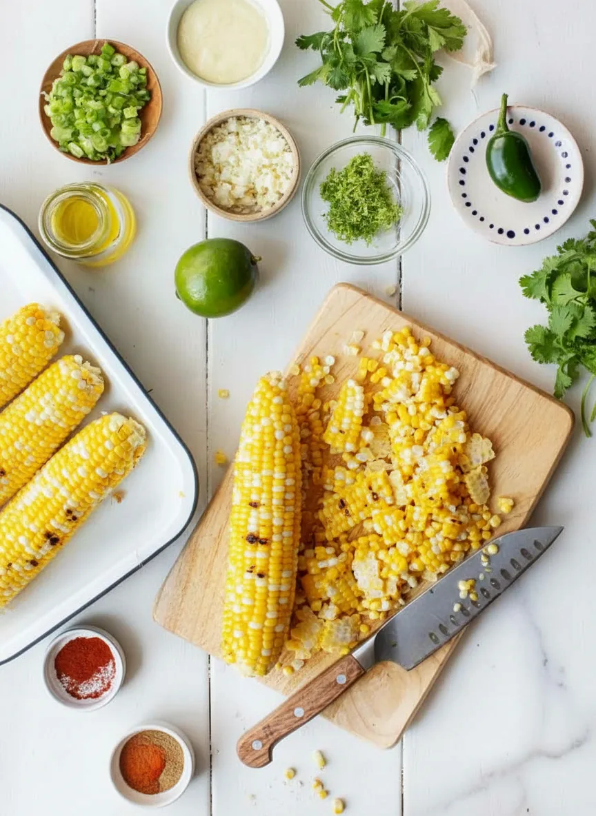 Heizen Sie Ihren Grill oder eine Grillpfanne auf mittlere Hitze vor. Entfernen Sie die Hüllblätter von den Maiskolben. Anschließend grillen Sie die Kolben für etwa 10 Minuten. Drehen Sie sie gelegentlich, bis sie auf allen Seiten leicht gebräunt sind. Diese Röstaromen sind entscheidend für den authentischen Geschmack. Lassen Sie die gegrillten Kolben etwas abkühlen. Dann schneiden Sie die Körner mit einem scharfen Messer vorsichtig ab. Geben Sie die Maiskörner in eine große Schüssel.