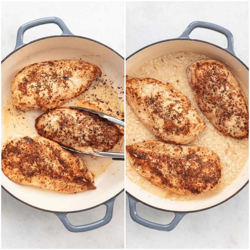 - Nimm dir Zeit beim Anbräunen des Hähnchens – diese Mallard-Reaktion sorgt für mehr Geschmack.
