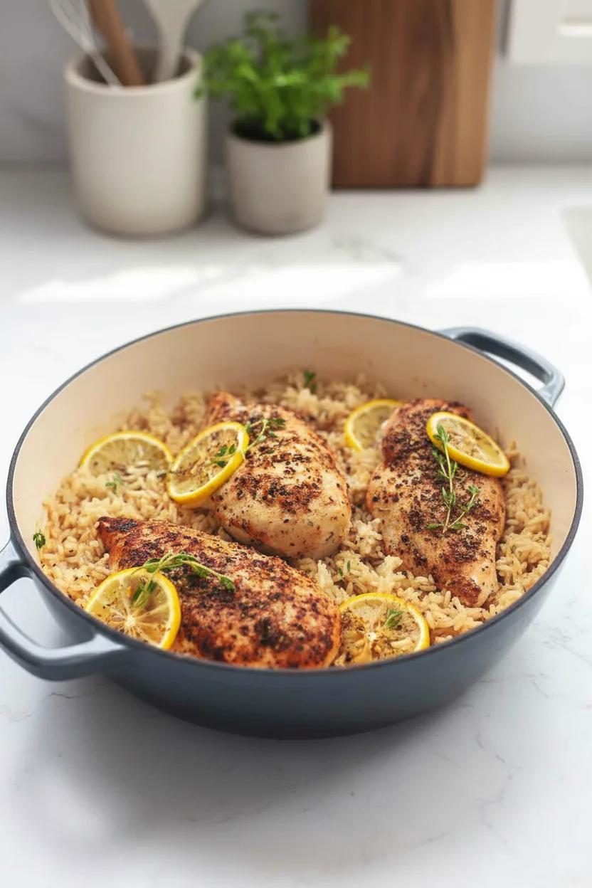 Saftiges Hähnchen mit zitronigem Reis und Kräutern in einem Topf – schnell und einfach zubereitet