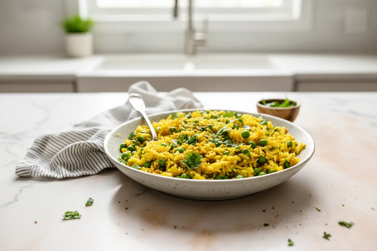 - Reis-Trick: Nach dem Kochen 5 Minuten ausdampfen lassen für lockere Körner