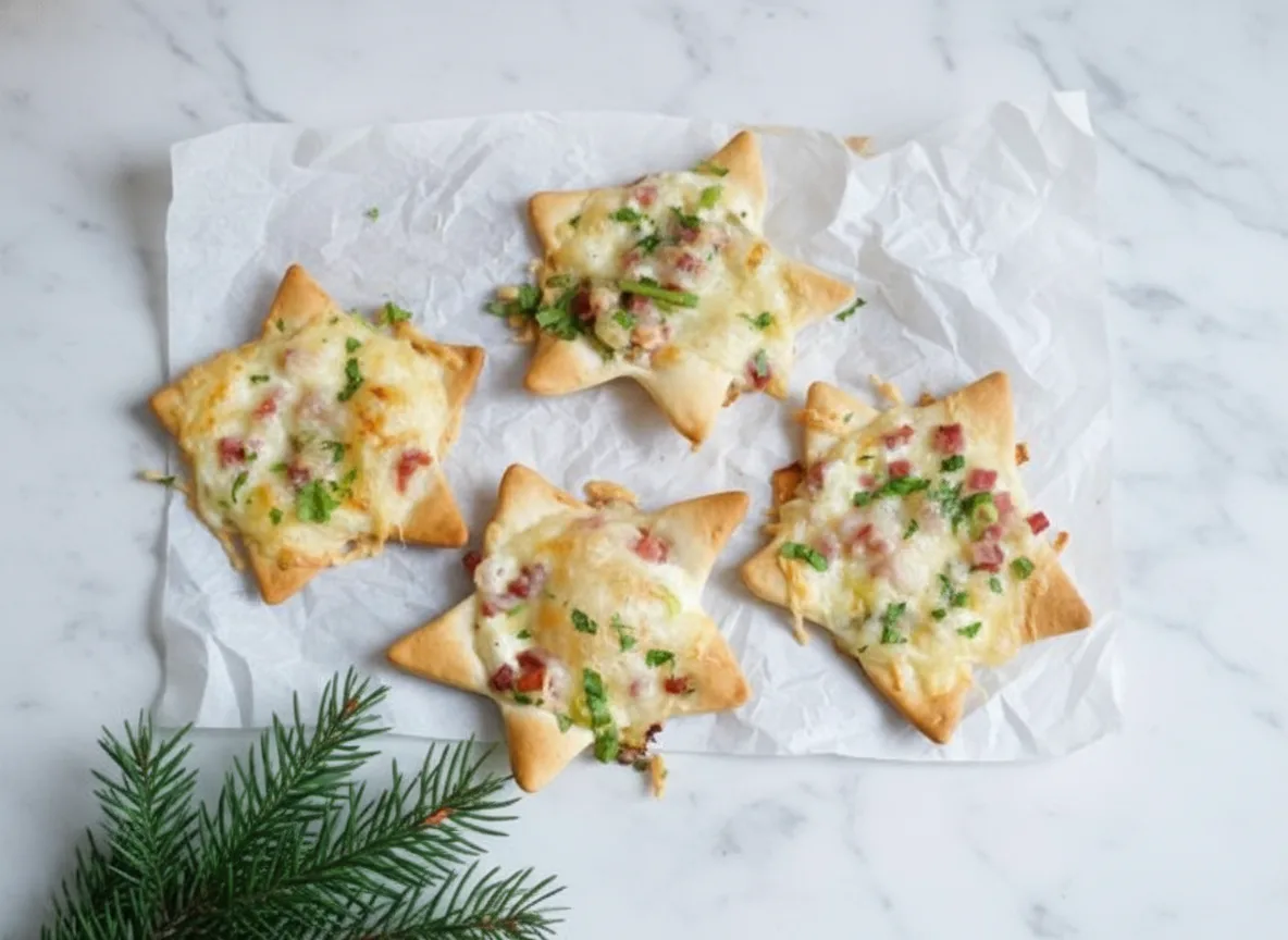 Knusprige Flammkuchen-Sterne mit herzhaftem Belag – perfektes Fingerfood für jede Gelegenheit