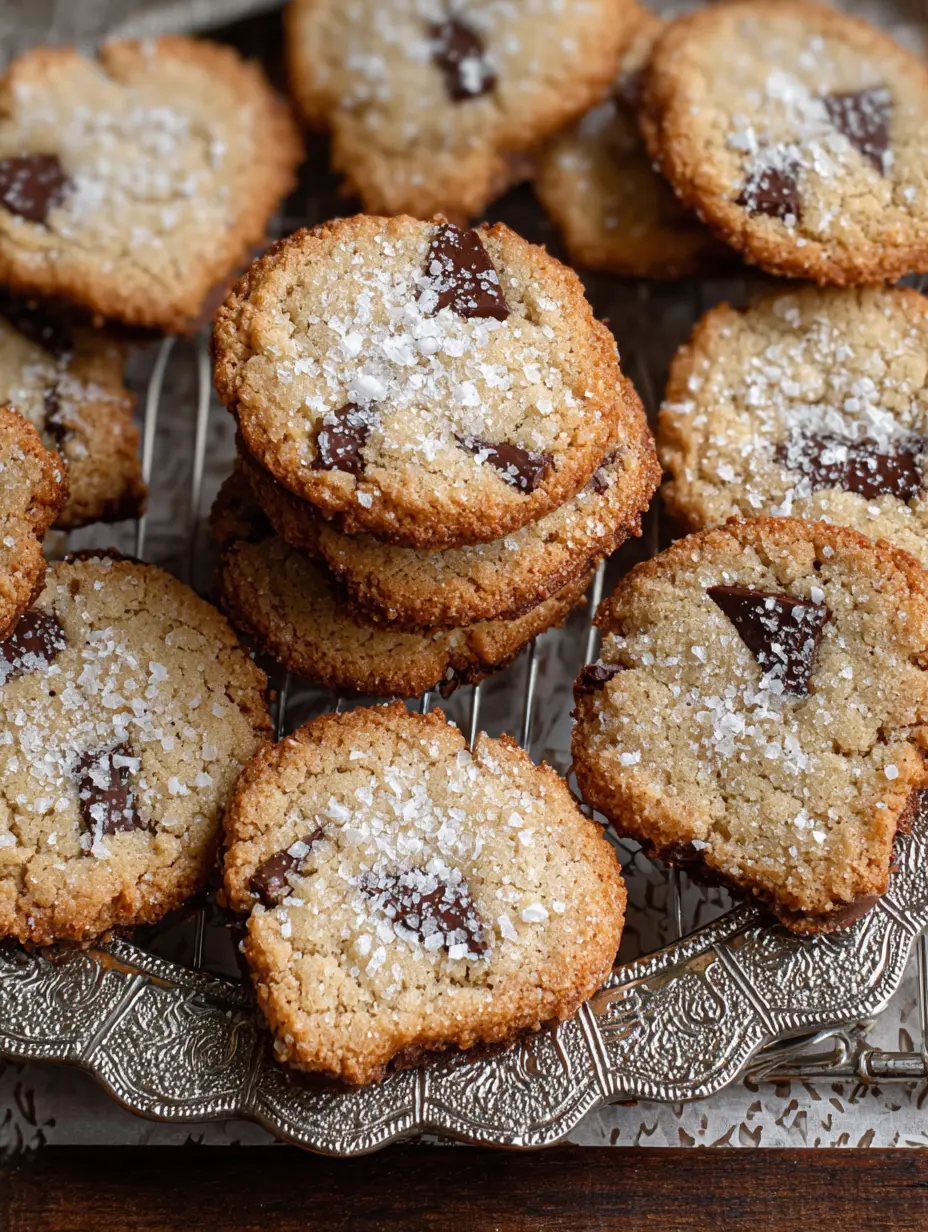 - Optional garnieren: Wenn gewünscht, sofort eine kleine Prise des groben Meersalzes über jeden noch warmen Keks streuen.