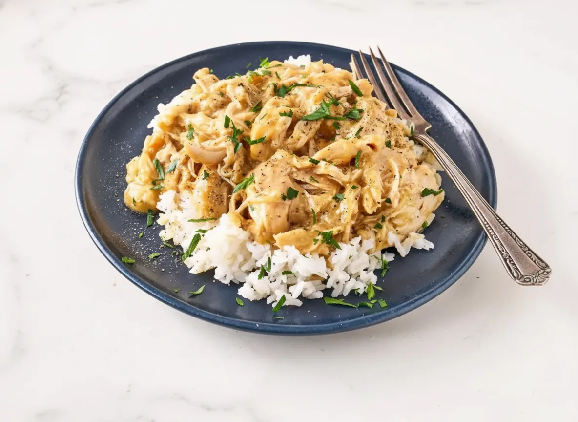 Ein einfaches Hähnchengericht aus dem Slow Cooker mit cremiger Soße – perfekt für stressfreie Abende