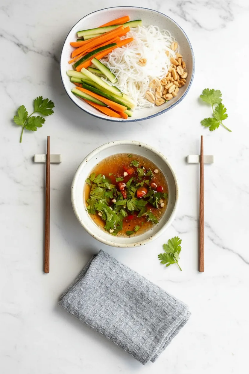 Zubereitung der Vietnamesischen Nudel-Bowl