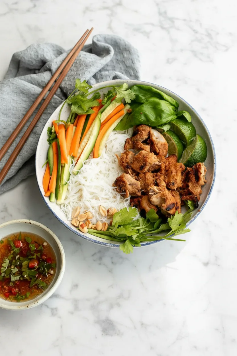 Diese Vietnamesische Nudel-Bowl vereint alle Vorzüge der asiatischen Küche: Frische, Leichtigkeit und intensiven Geschmack. Sie ist ideal für gesundheitsbewusste Genießer und lässt sich wunderbar an persönliche Vorlieben anpassen.
