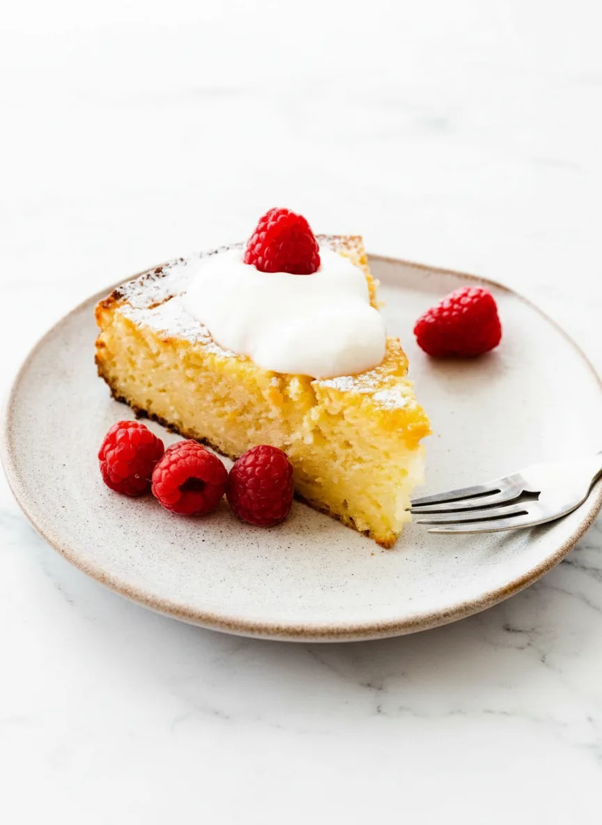 Für eine festliche Note garnierst du jede Portion mit einer Kugel hausgemachter Schlagsahne und frischen Himbeeren. Du kannst es sogar zum Frühstück oder Brunch genießen. Es ist weniger süß als viele andere Kuchen.